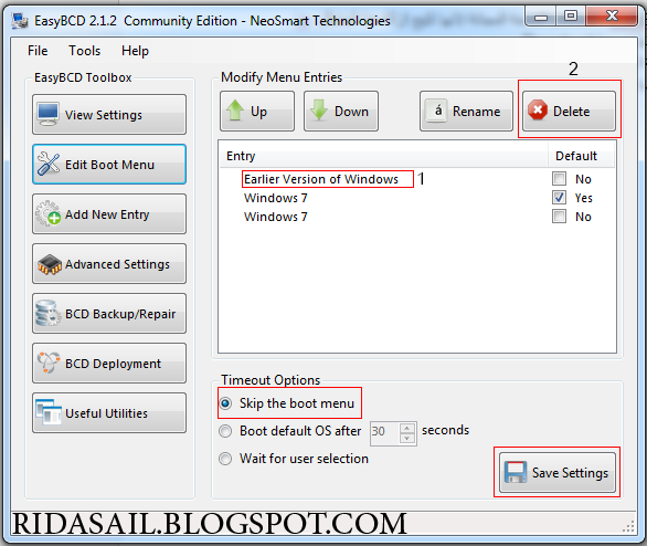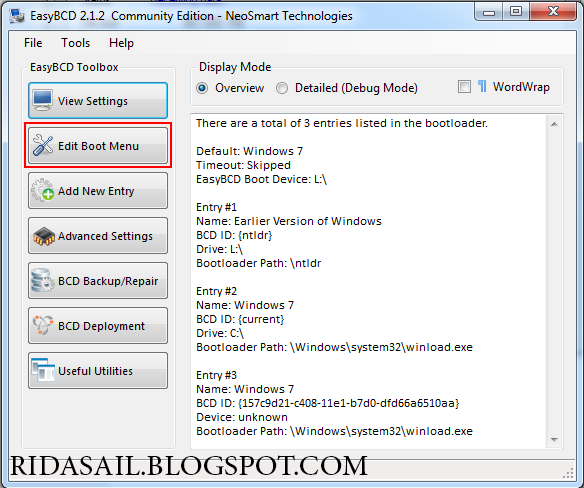 - اولا يجب ان تحمل برنامجا اسمه EasyBCD، سنستخدم النسخة المجانة لانها تتيح ازالة هذا المشكل: هنا